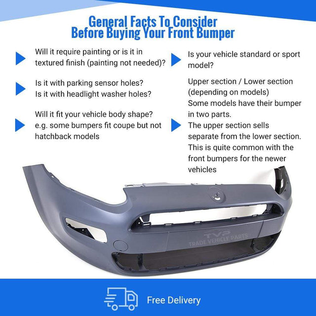 Fiat Punto 2012- Onwards Front Bumper Primed No Pdc Or Washer Holes