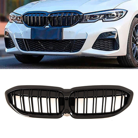Fits BMW 3 Series G20 G21 2019-2022 Front Kidney Grilles Twin Slats M Sport Style Gloss Black