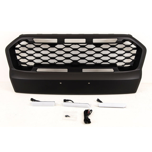 For Ford Ranger T6 2015-2019 Front Main Grille Mesh Style Upgade With LED Lights Black