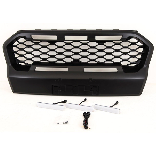 For Ford Ranger T6 Wildtrak 2019-2022 Front Main Grille Mesh Style Upgade With LED Lights Black