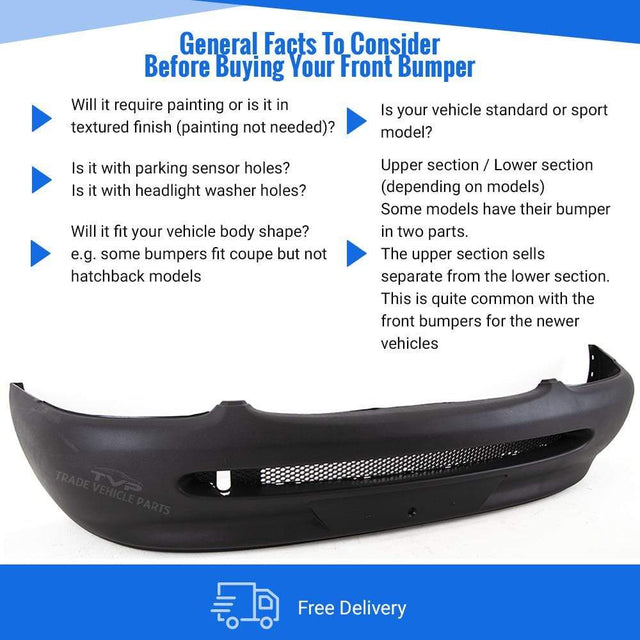 Fits Ford Escort 1995-2001 Front Bumper Primed With Grille No Fog Holes No Pdc Holes