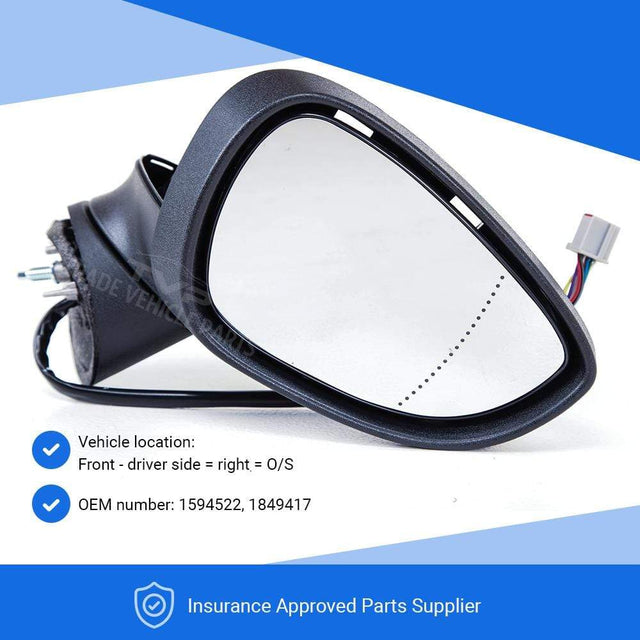 Fits Ford Fiesta 2013-2017 Door Wing Mirror Heated Electric Primed Right Power Fold 10Pins