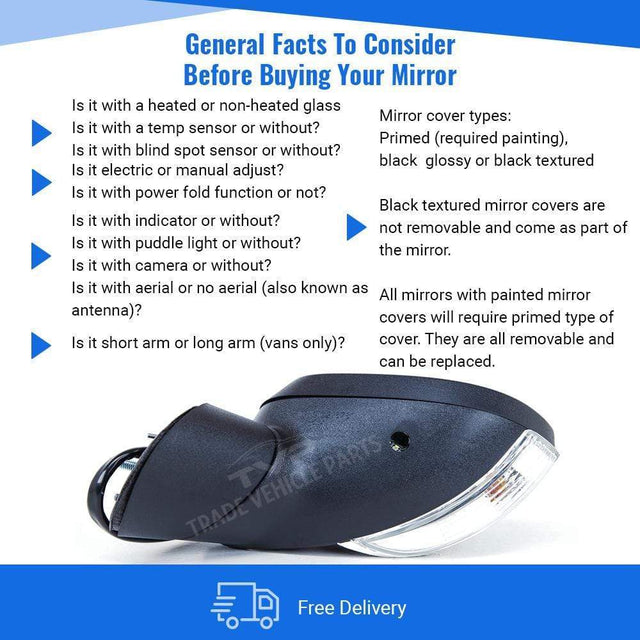 Ford Fiesta 2013-2017 Door Wing Mirror Heated Electric Primed Right Power Fold 10Pins