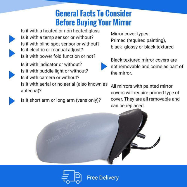 Fits Ford Fiesta Mk4 1996-1999 Door Wing Mirror Electric Heated Primed Driver Side