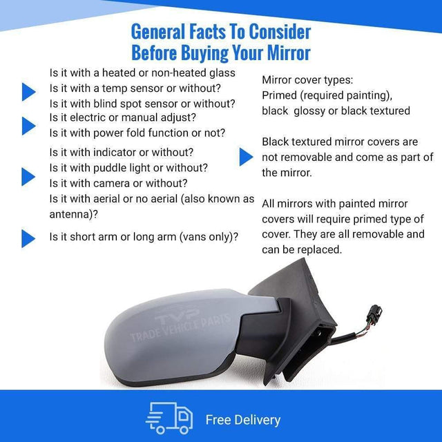 Fits Ford Fiesta Mk6 2002-2005 Door Wing Mirror Electric Heated Primed Driver Side
