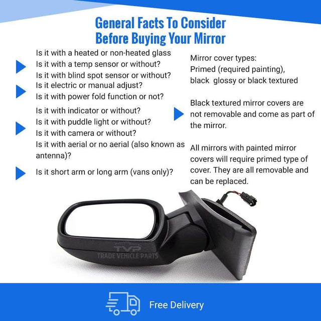 Fits Ford Fiesta Mk6 2002-2005 Door Wing Mirror Electric Heated Textured Driver Side