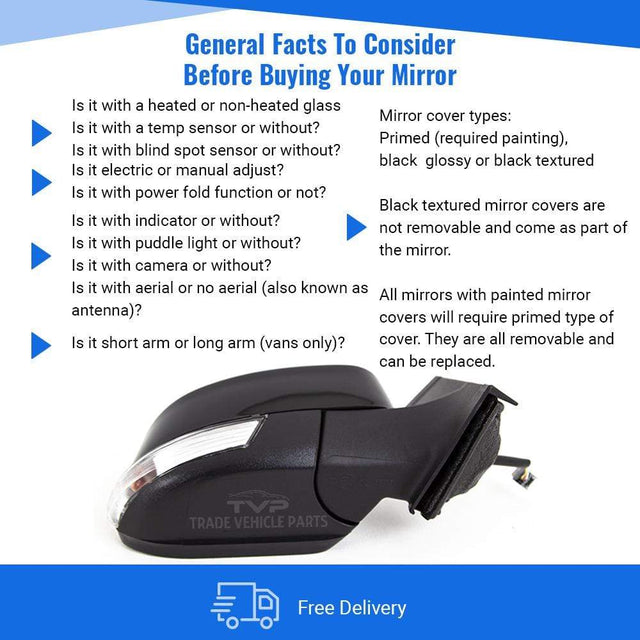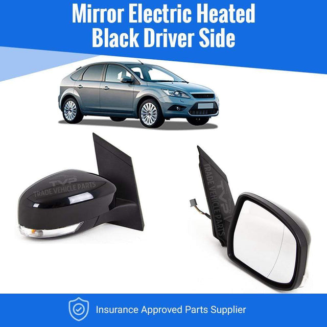 Ford Focus 2008-2011 Door Wing Mirror Heated Electric Black W/Ind Driver Side