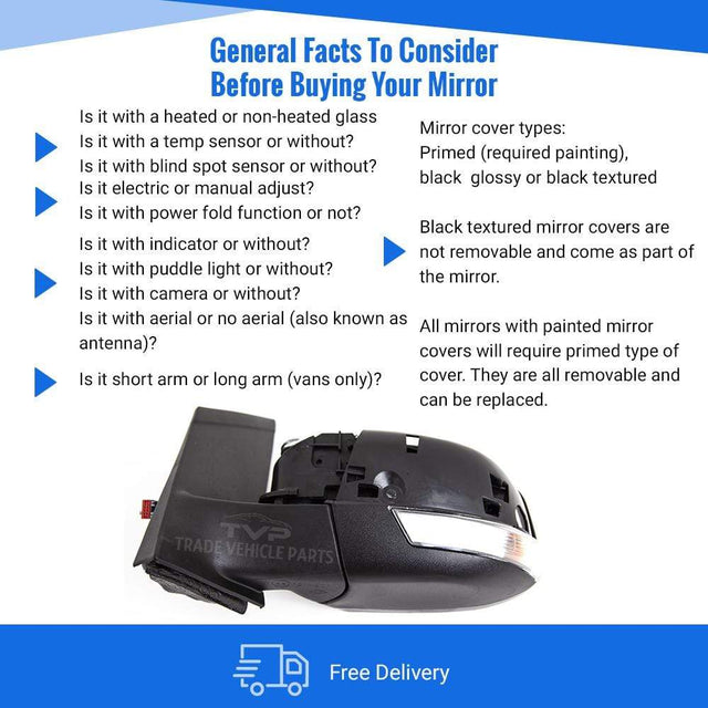 Ford Focus 2008-2011 Door Wing Mirror Heated Electric Black W/Ind Passenger Side
