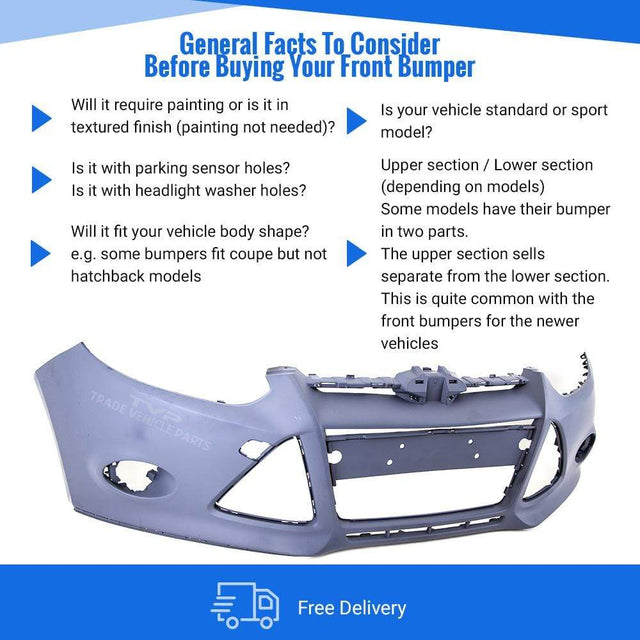 Ford Focus 2011-2014 Front Bumper Primed No Pdc Or Washer Holes