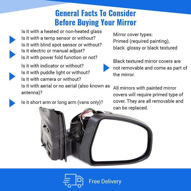 Ford Focus 2011- Door Wing Mirror Heated Electric Power Fold Primed W/Indicator Puddle Lamp Driver Side
