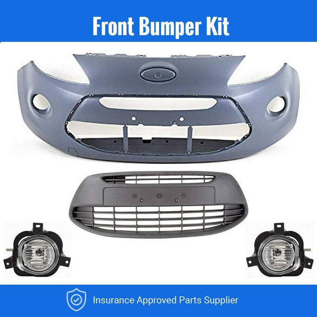 Ford Ka 2009-2016 Front Bumper Kit Primed With Lower Grille & Fog Light Lamps