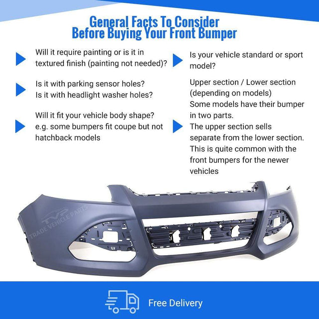 Ford Kuga 2013-2016 Front Bumper Primed No Pdc Or Washer Holes