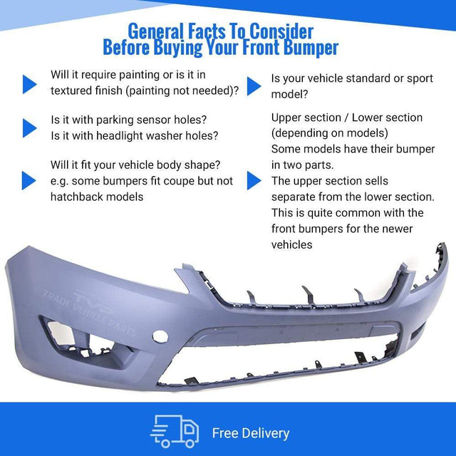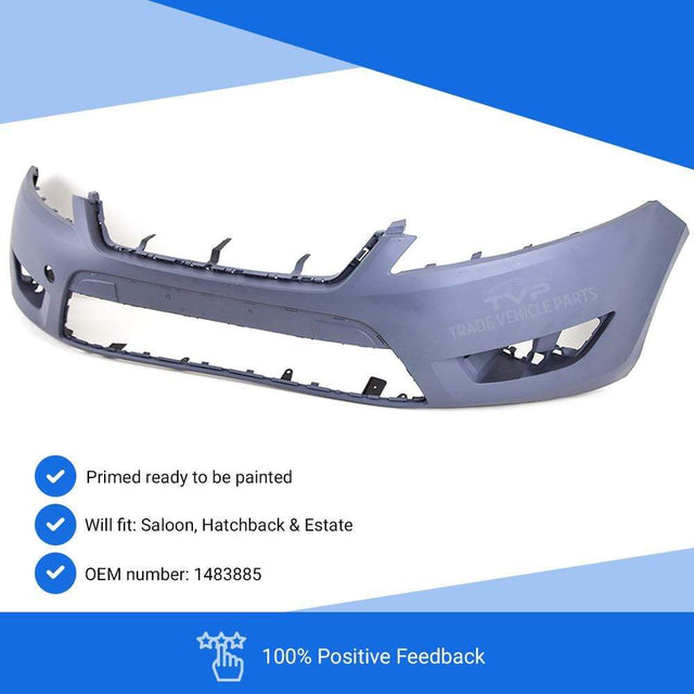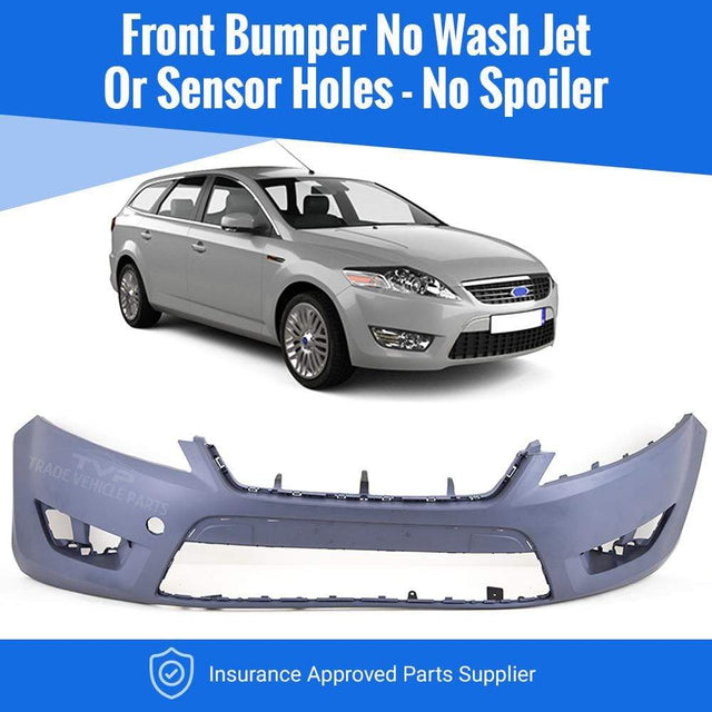 Fits Ford Mondeo 2007-2010 Front Bumper Primed No Wash Jet Or Sensor Holes-No Spoiler