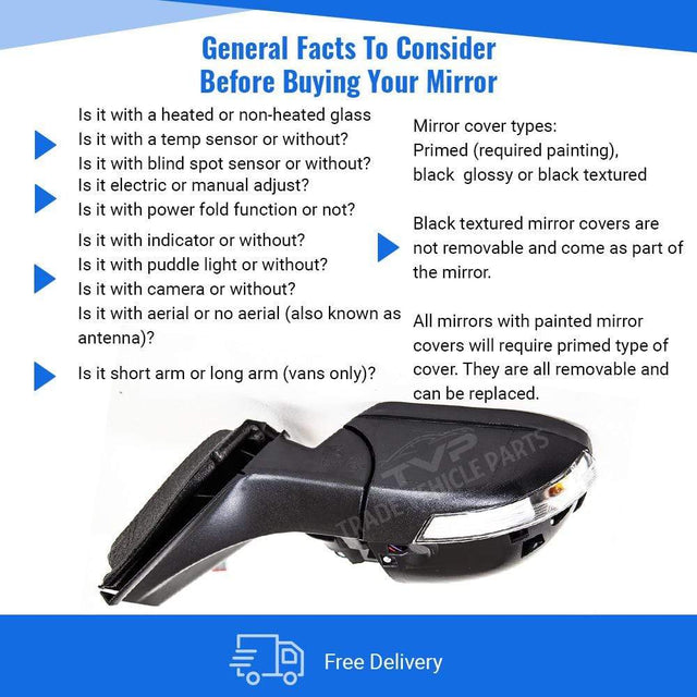 Ford Mondeo 2010-2014 Door Wing Mirror Heated Electric Primed Right Power Fold 8 Pins