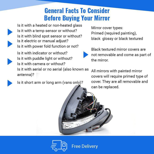 Fits Ford Mondeo 2015-2019 Door Wing Mirror Electric Heated Power Fold With Indicator Puddle Lamp & Temp Sensor Primed Driver Side