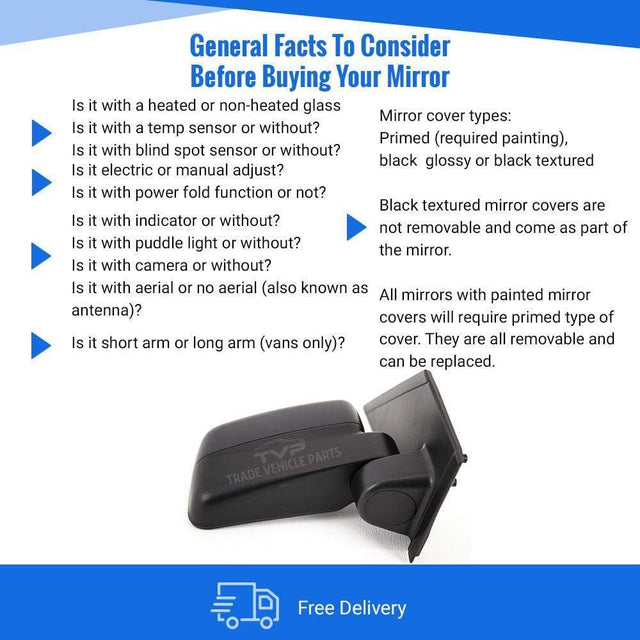 Fits Ford Transit Connect 2009-2013 Door Wing Mirror Manual Black Driver Side