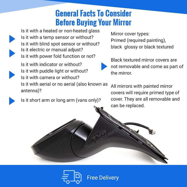 Ford Transit Connect 2014-2018 Door Wing Mirror Electric Heated Primed Passenger Side