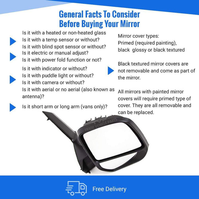 Fits Ford Transit Connect 2014- Door Wing Mirror Manual Textured Driver Side