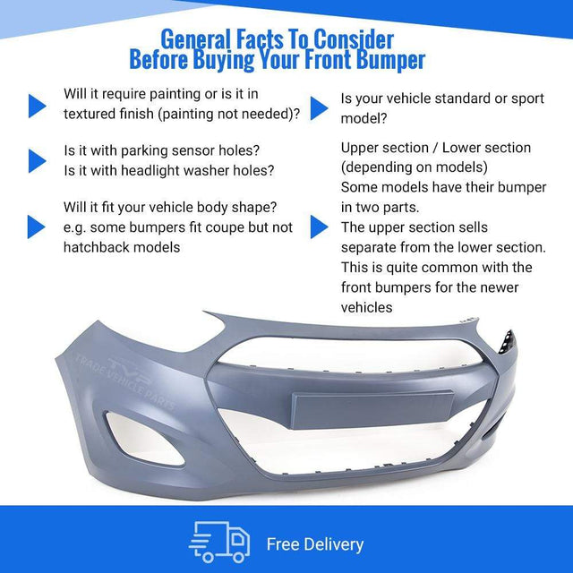 Hyundai I10 2011-2013 Front Bumper Primed No Pdc Or Washer Holes
