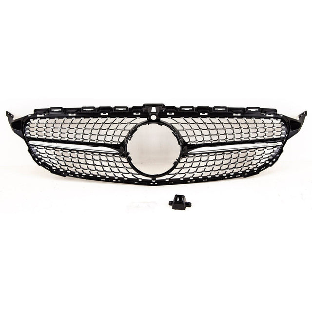 Mercedes C Class W205 2014-2018 Front Bumper Grille Black & Chrome AMG Diamond Style