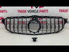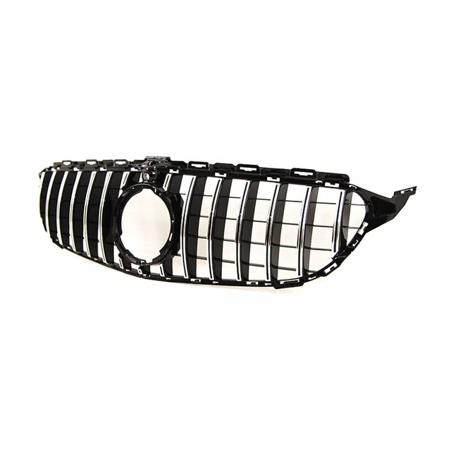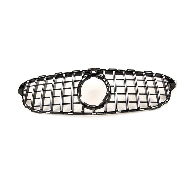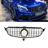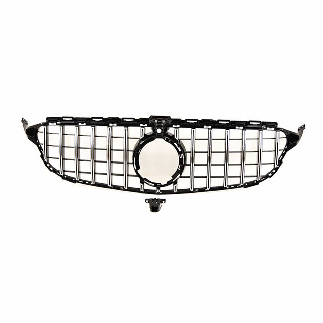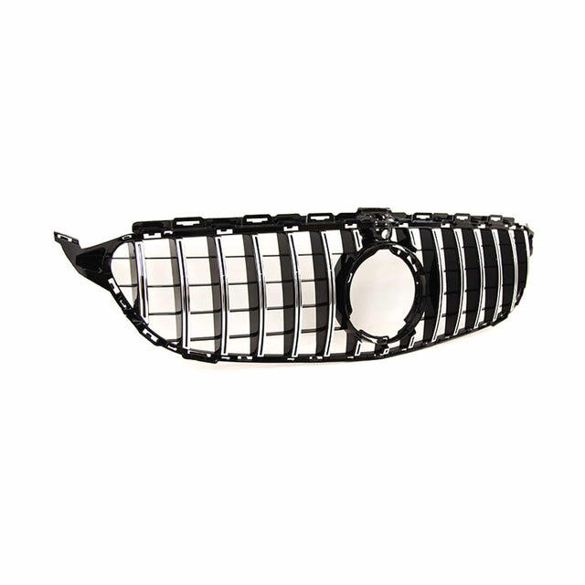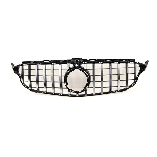 Fits Mercedes C Class W205 2018-2021 Front Bumper Grille Gloss Black With Chrome Slats With Camera Hole AMG Panamericana GT Style