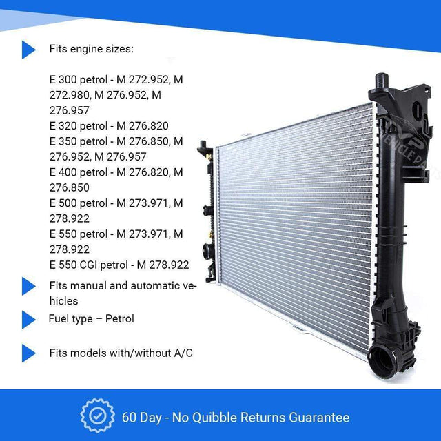 Fits Mercedes E-Class C207 2009-2017 Radiator (E 300, E 320, E 400 Petrol Automatic With Ac) (E 350 Petrol Man/Auto With/Without Ac) (E 500, E550, E 550 Cgi Petrol Manual With Ac)