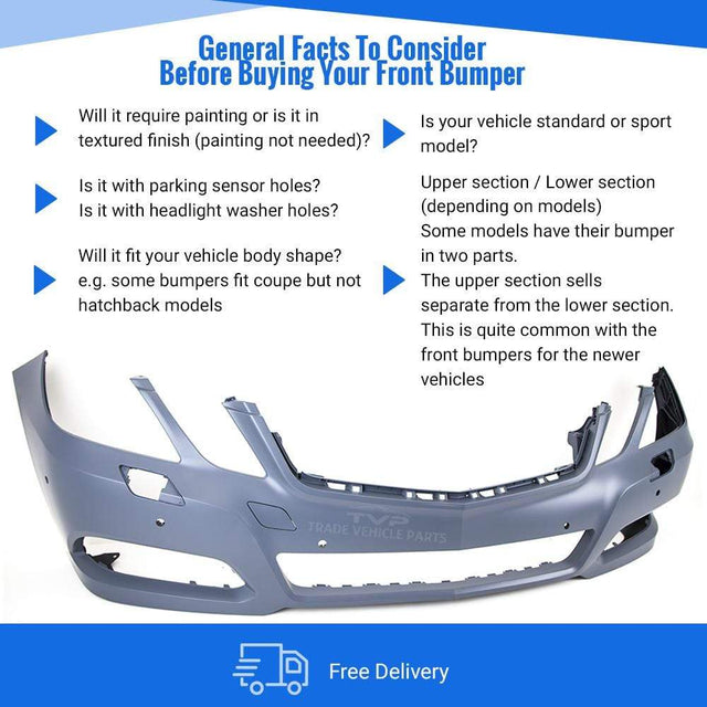 Mercedes E-Class W212 2009-2013 Front Bumper Primed Pdc & Washer Hole Avantgarde
