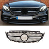 Fits Mercedes E Class W213 S213 C238 A238 2016-2020 Front Bumper Grille AMG Diamond Style Gloss Black W/ Chrome Trim & Pins