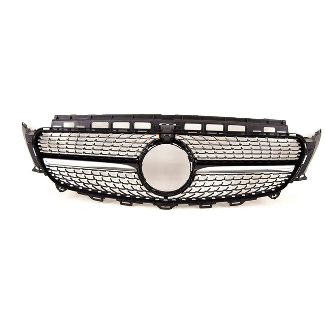 Mercedes E Class W213 S213 C238 A238 2016-2020 Front Bumper Grille AMG Diamond Style Gloss Black W/ Chrome Trim & Pins