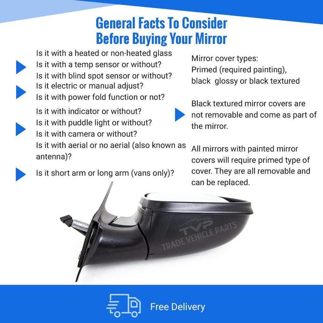 Mercedes Vito (639) 2003-2010 Door Wing Mirror Heated Electric Black Driver Side