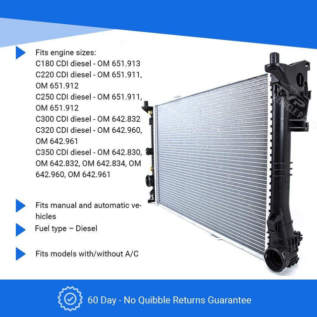 Fits Mercedes W204 07-14 Radiator C 180 220 250 300 320 350 Cdi Man/Auto W/Wo A/C
