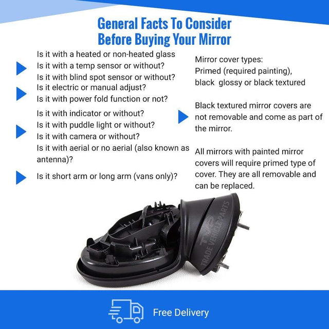 Fits Mini Cabrio R57 2009-2015 Door Wing Mirror Electric Heated Primed Right Side