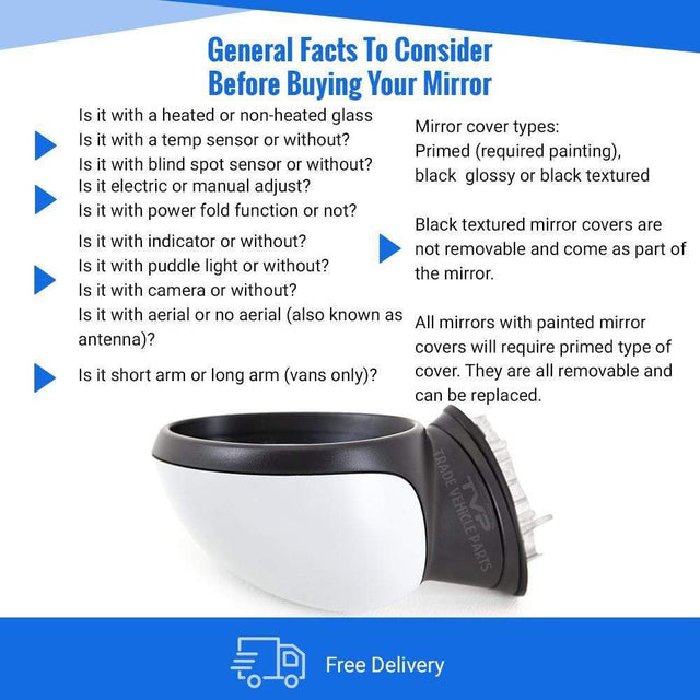 Fits Mini R55 2007-2014 Door Wing Mirror Electric Heated Power Fold Primed Right Side