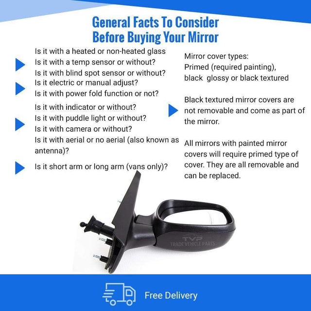 Fits Nissan Kubistar 2003-2008 Door Wing Mirror Manual Black Driver Side