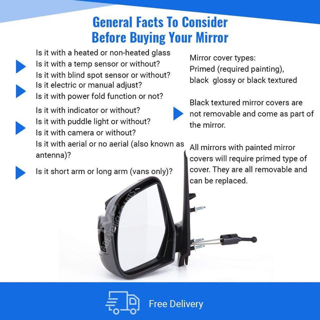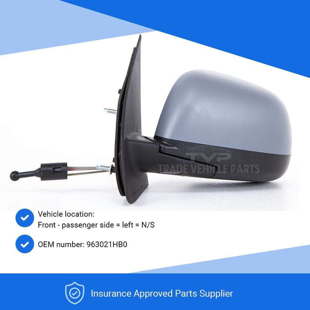 Nissan Micra 2011-2017 Door Wing Mirror Manual Cable Primed Cover Passenger Side