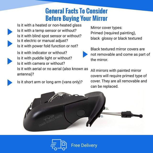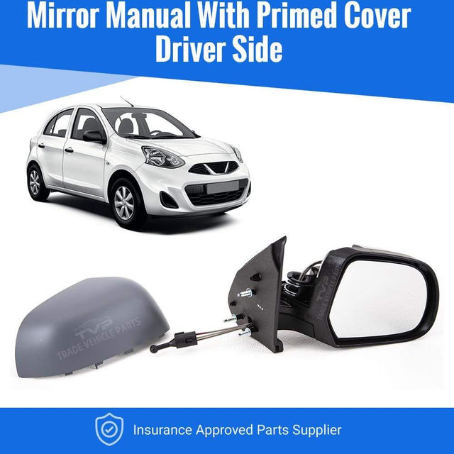 Fits Nissan Micra 2013-2017 Door Wing Mirror Manual Type With Primed Cover Driver Side