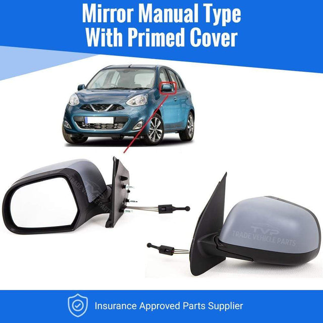 Fits Nissan Micra 2013-2017 Door Wing Mirror Manual Type With Primed Cover Passenger Side