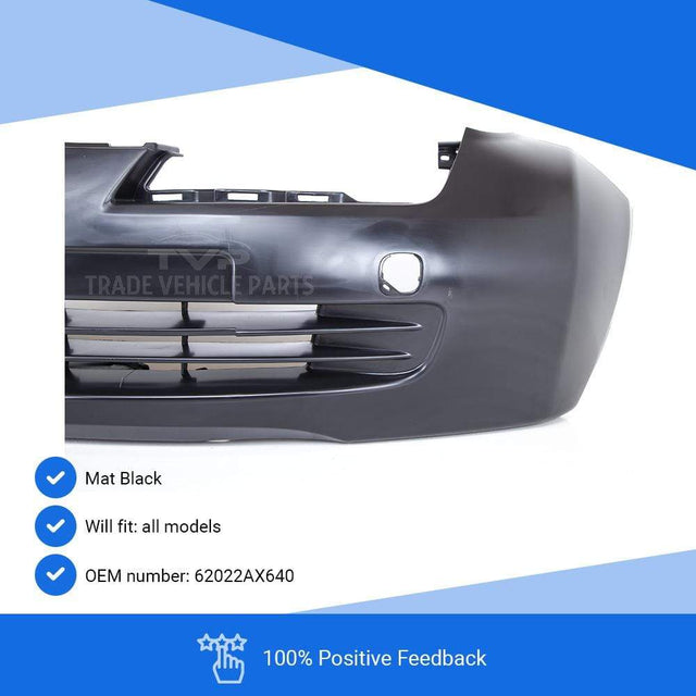 Nissan Micra K12 2003-2006 Front Bumper Black No Fog Holes No Pdc Or Washer Holes