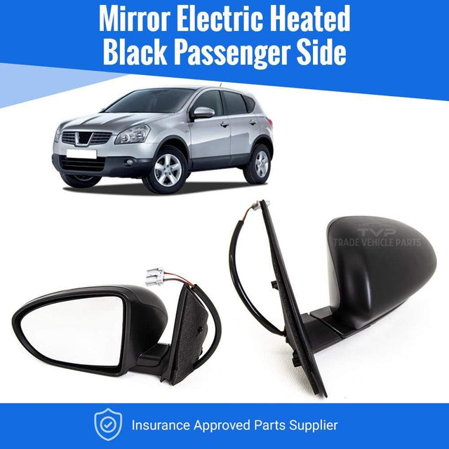 Fits Nissan Qashqai 2007-2013 Wing Door Mirror Heated Electric Black Passenger Side