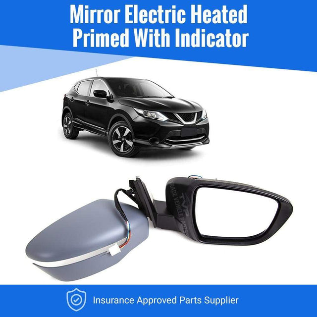 Fits Nissan Qashqai 2014- Door Wing Mirror E/H With Indicator Primed Driver Side