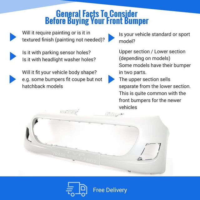 Fits Peugeot 107 2009-2012 Front Bumper Primed No Pdc Or Washer Holes