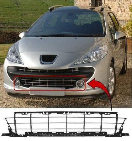 Fits Peugeot 207 Sw Estate 2007-2009 Front Lower Centre Bumper Grille Mat Black Sport