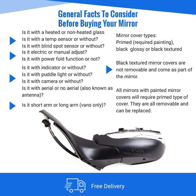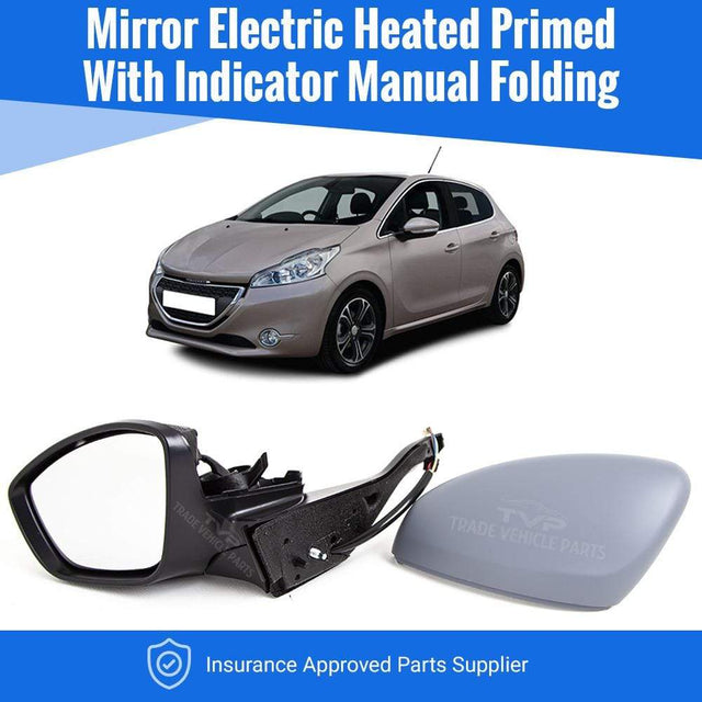 Fits Peugeot 208 2012-2016 Door Wing Mirror Electric Heated Primed W/Indicator Left