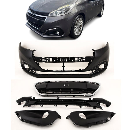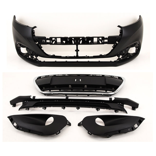 Peugeot 208 2015-2019 Front Bumper Kit Complete With Grilles Primed Without PDC Or Washer Holes