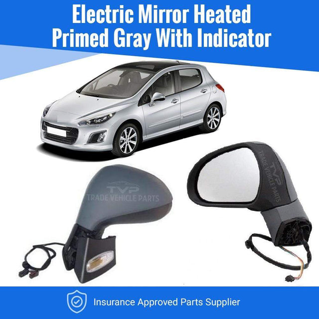 Peugeot 308 2007-2014 Door Wing Mirror Heated Electric Primed-Gray W/Ind Passenger Side 6 Pins