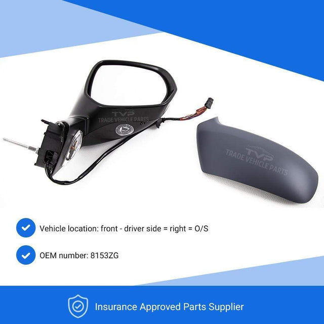 Fits Peugeot 5008 2010-2017 Door Mirror Electric Heated Power Fold Primed Right O/S