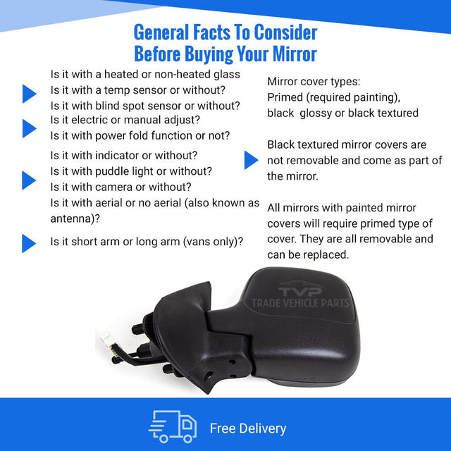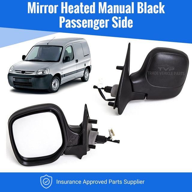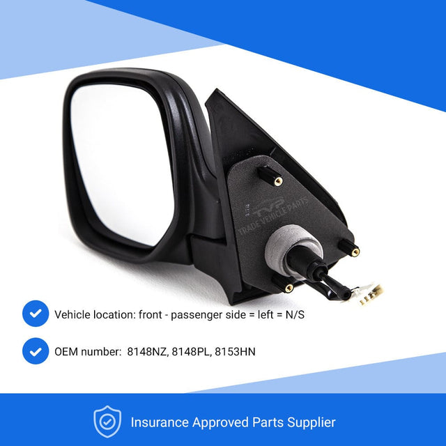 Fits Peugeot Partner 1996-2008 Door Wing Mirror Heated Manual Black Left Side