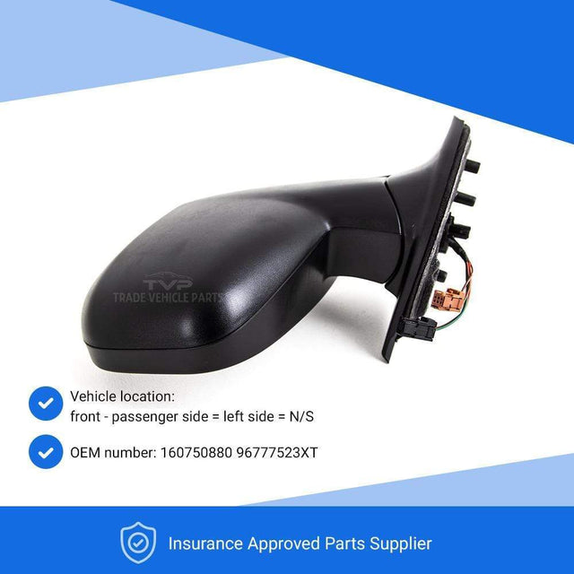 Fits Peugeot Partner 2008-2012 Door Wing Mirror Heated Electric Black Passenger Side