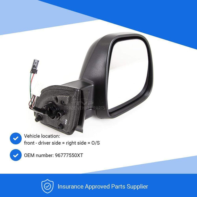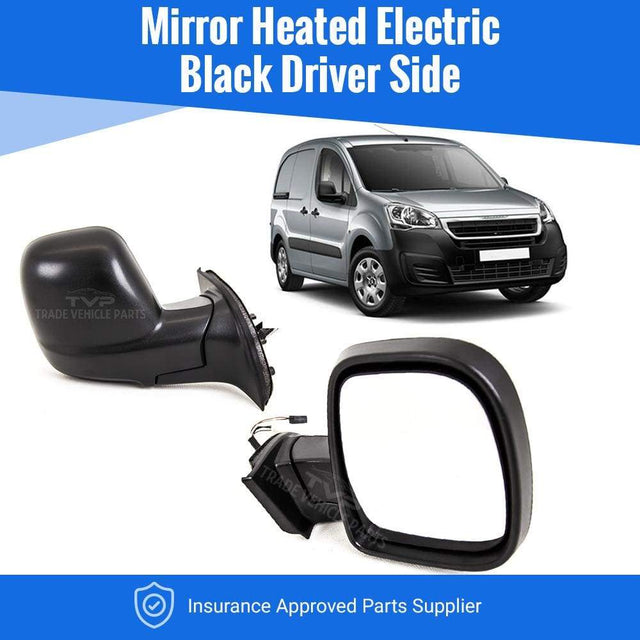 Fits Peugeot Partner 2012-2018 On Door Wing Mirror Heated Electric Black Driver Side