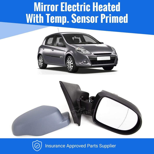 Renault Clio 2009-2012 Door Wing Mirror Electric Heated Temp Sensor Primed Driver Side
